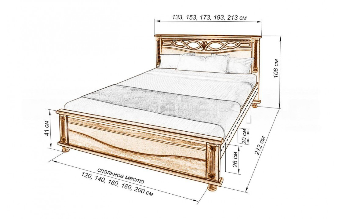 Оригинальная кровать Мелиса из берёзы отличается узорчатым изголовьем и низким изножьем. Модель, которую можно купить по выгодной цене в нашем интернет-магазине, оснащена аккуратными ножками для защиты напольного покрытия, а также обработана специальным лаком для увеличения срока службы изделия. Осуществляется доставка на дом по Стерлитамаку и Республике Башкортостан.| Размер | Цена | |