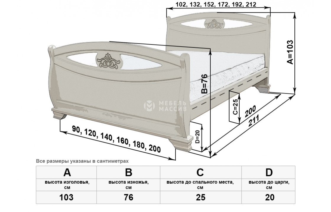 Кровать Эльза имеет две идентичные спинки, отличающиеся аккуратной изогнутостью, декоративными углублениями и цветочными узорами. Изделие, которое можно купить по специальной цене в нашем интернет-магазине, оснащено устойчивыми ножками, защищающими напольное покрытие от повреждений. Осуществляется доставка на дом по Стерлитамаку и Республике Башкортостан.| Размер | Цена | |