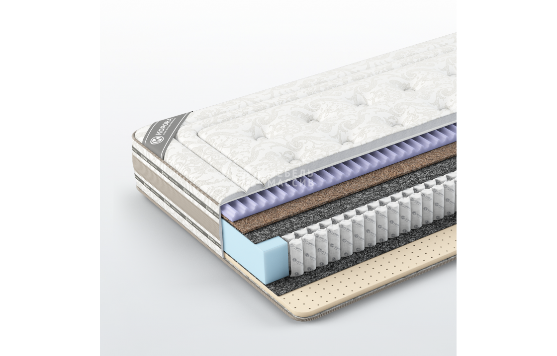 Кокос - переплетенные волокна кокосового ореха, растительного происхождения. Исключительные свойства кокоса в прочности, упругости и гигиеничности. Материал придает жесткости матрасу. Обладает отличной вентилируемостью, устойчив к любой влажности и перепадам температуры, гипоаллергенный и долговечный.