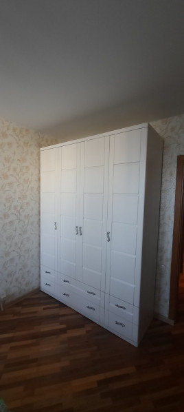 Шкаф четырёхстворчатый из натурального дерева, массив сосны, цвет белая эмаль, мебель выполнена по индивидуальному проекту.